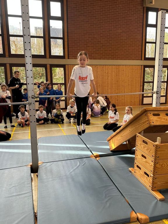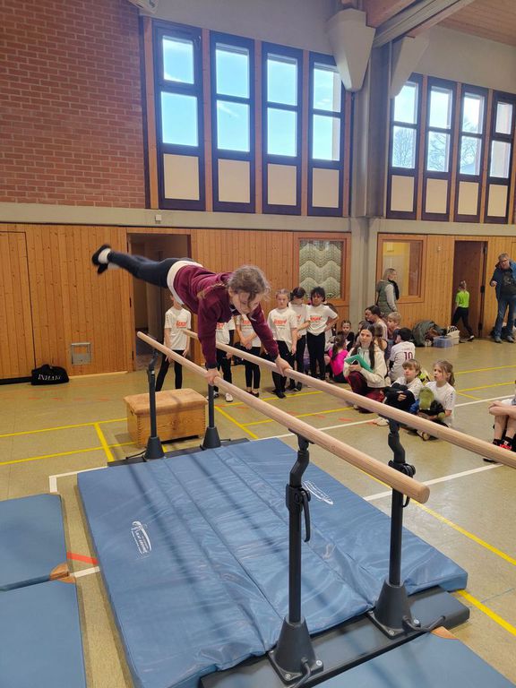 Die Kinder wurden von Frau Kreber und Frau Grifka hervorragend auf die Übungen am Reck, Barren, Boden, Balken und Sprung vorbereitet. Vielen Dank dafür!