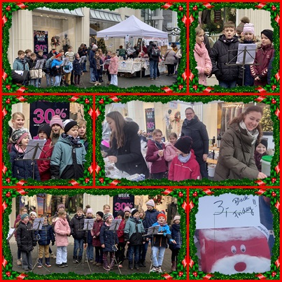 All die viele Mühe und Vorbereitungen haben sich gelohnt: Beim Waffelstand in der Stadt konnten alle Basteleien, Marmeladen, Mandeln und Plätzchen zum Verkauf angeboten werden. Kinder aller Klassen, die mit weihnachtlichen Liedern für regen Zulauf und Applaus sorgten, luden zum Verweilen bei Glühwein, Punsch und frisch gebackenen Waffeln ein.