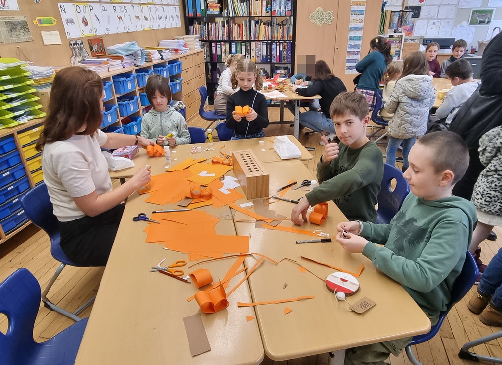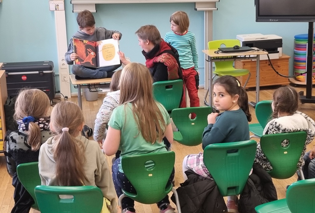 Zum zweiten Mal in unserer Grundschulzeit waren wir Gastgeber des Lesecafés. Mit einem Eichhörnchen- und einem Martinslied sowie mit einem Regenschirmtanz begrüßten wir eine besonders große Gästeschar. Die Geschichten in den vier Vorlesegruppen handelten von Blätterdieben, einer heulenden Eule, einem furchtlosen Murmeltieren und Streithörnchen. Die Bücherstände und die Kreativwerkstatt waren gut besucht, ebenso der Stand des Fördervereins.