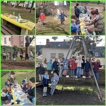 In diesem Jahr versteckte der Osterhase unsere Osternestchen auf dem Sparkassenspielplatz. Nach der anstrengenden Suche kam uns das kleine Osterpicknick von Frau Panajotovic und Frau Schmidt gerade recht.