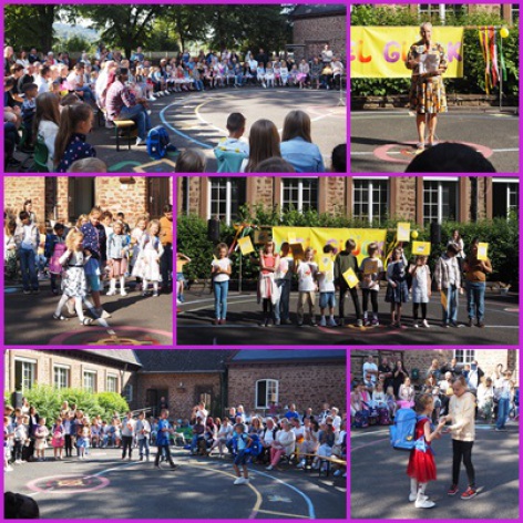 Als krönenden Abschluss einer überaus ereignisreichen Europa-Projektwoche mit Mini-EM veranstaltete der Schulelternbeirat ein Sommerfest. Zur Eröffnung präsentierten sich der Schulchor unter Leitung von Axel Simon sowie einzelne Klassen, die ihre in der Projektwoche eingeübten musikalischen oder tänzerischen Beiträge aufführten. Auch die Schulleiterin Frau Brenner und die Schulelternsprecherin Frau Panajotovic hießen die vielen kleinen und großen Gäste herzlich willkommen und gaben den Startschuss für die Präsentation der einzelnen Gruppen. Die Besucher ließen sich von den Kindern ihre Materialsammlungen, Plakate und Kunstwerke zeigen und wichtige Fakten über die Europäische Union, Italien, Belgien, Frankreich, Deutschland, die Niederlande und Griechenland erklären.