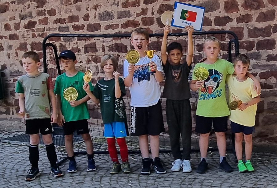 Schon lange fieberten die Kinder der Mini-EM entgegen und so fand endlich ein weiterer Höhepunkt während unserer Europa-Projektwoche statt. Am Turnier nahmen die Mannschaften aus Spanien, Frankreich, der Schweiz, der Ukraine, Italien und selbstverständlich Deutschland teil. Unsere engagierten Lese-Mamas Frau Elsen, Frau Kreber, Frau Kimmelmann, Frau Panajotovic und Frau Weber sowie unsere Schulbegleiterin Frau Hertlein sprangen bereitwillig als Riegenführerin ein und so konnte die Meisterschaft bei bestem Wetter beginnen.